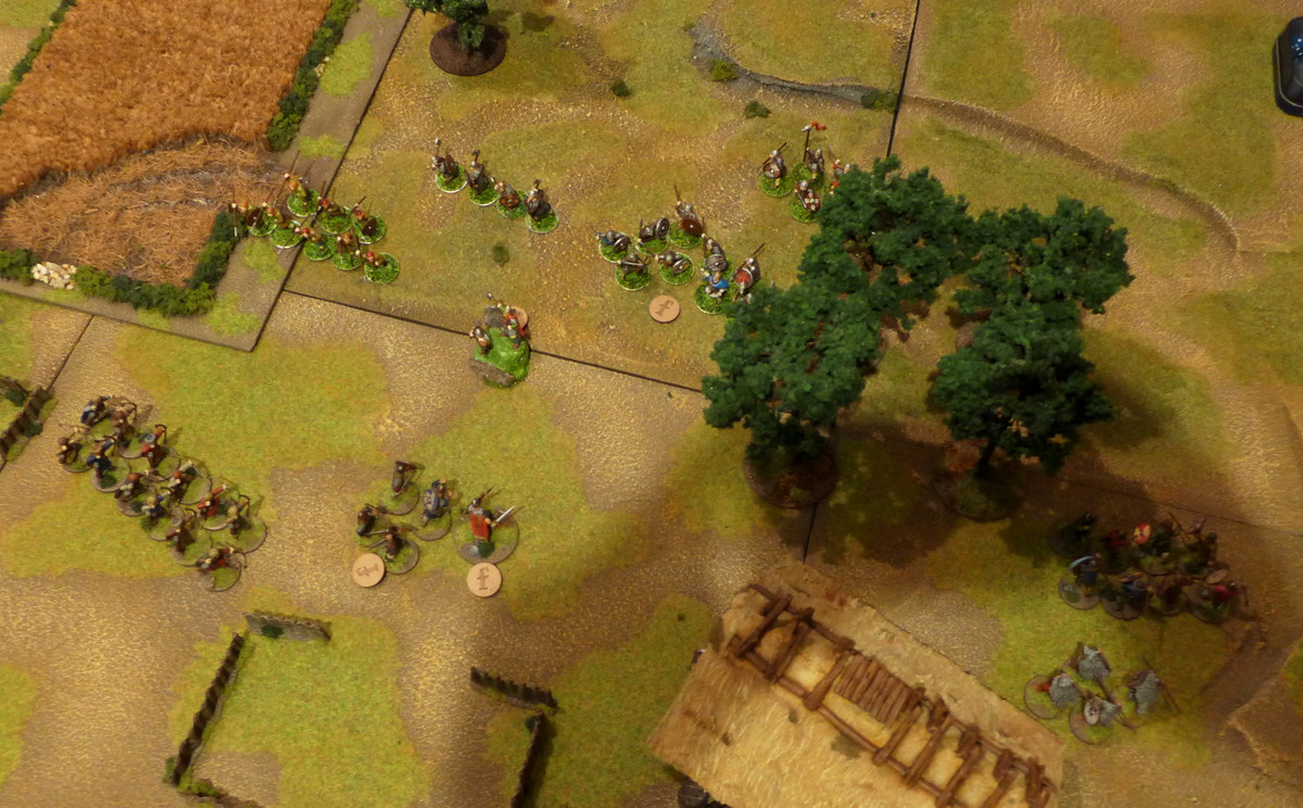 However Christians Anglo-Saxons rushed forward with all their power but I held back my Vikings slightly. Actually I wanted to bring the berserkers into his flank and see how much grief they could sow there.